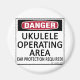¡Peligro, Área Operativa Ukulele! ¡Se Requiere Protección De Oídos! Esto es una advertencia clara para cualquiera en torno a instrumentos musicales. Vea todos nuestros diseños musicales en tazas, tazas, camisetas, sudaderas, gorras y otros regalos y ropa.