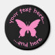 Mariposa rosa de ullisis. Icono del vector con color de personalizable. Color de fondo personalizado. Dos campos de texto personalizado en círculo.