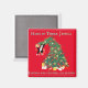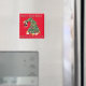 Este gato gracioso colgado en un árbol de Navidad podría enviar un mensaje a las mujeres cansadas, a las administradoras de Las Fiestas, de que necesitan colgarse ahí. No dura para siempre aunque parezca que sí. Un brillante imán rojo de vacaciones con un lindo mensaje de ánimo puede ser solamente la sonrisa que necesita. La tipografía "Cuelga ahí", personalizada con un nombre y el texto de Navidad se complementa con el divertido gato de esmoquin que cuelga del ilustracion de los árboles de Navidad. Hace un gran regalo de anfitriona o un regalo a cualquier Navidad que conozcas.