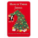 Este gato gracioso colgado en un árbol de Navidad podría enviar un mensaje a las mujeres cansadas, a las administradoras de Las Fiestas, de que necesitan colgarse ahí. No dura para siempre aunque parezca que sí. Una toalla de cocina roja de vacaciones brillante puede ser sólo la sonrisa que necesita. La tipografía "Cuelga ahí", personalizada con un nombre y el texto de Navidad se complementa con el divertido gato de esmoquin que cuelga del ilustracion de los árboles de Navidad. Hace un gran regalo de anfitriona o un regalo a cualquier Navidad que conozcas.