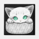 Gato de bebé gato gitano y juguetón con grandes ojos de agua, alcanzando su punto máximo en un bolsillo. Ilustracion vectorial original Copyright BluedarkArt TheChameleonArt.