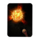 Ilustracion de un jóven enano rojo quitando la atmósfera de un planeta en órbita. Los estallidos violentos de gas en ebullición procedente de estrellas jóvenes del enano rojo pueden hacer que las condiciones sean inhabitables en los planetas incipientes.