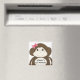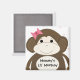 Un mono adorable con una sonrisa grande y un arco de pelo rosado. Un fondo blanco con puntos rosas. El dicho "mono lil de mamá" se puede cambiar como se desee.