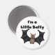Un murciélago negro de Halloween y un texto que dice "¡Soy un pequeño batty!" aparece en camisetas de murciélago de Halloween, tarjetas, tazas, trucos o víveres, imanes y más.