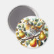 perdiz de oro de bonito en un imán de peras con follaje verde de bonito y peras doradas.
