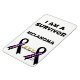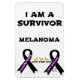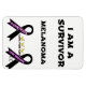 ¡Una sobreviviente de Melanoma! En la parte superior del diseño se encuentran las palabras "Soy un sobreviviente". En estas palabras se encuentran las palabras "Melanoma" y "Vive por la vida". En la parte inferior del diseño hay 2 cintas negras, que son el color cancerígeno del melanoma. En una cinta dice "Una sobreviviente" y en la otra cinta negra están las palabras "vive por la vida". Entre estas dos cintas están las palabras "Vivir por la vida" con 3 mariposas amarillas sobre el centro de estas palabras. En la parte inferior del diseño de la cinta negra derecha están las iniciales CC en honor a que mi hermana sea una sobreviviente de Melanoma Cancer!