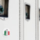 Bandera italiana, trazado de líneas de la torre inclinada y la palabra "Italia"