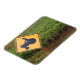 Imán Un tractor amarillo cruzando la señal en el viñedo