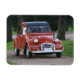 Imán Un viejo coche rojo Citroen 2CV con una mujer sonr