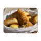 Imán Una cesta de desayuno de mimbre con croissants y