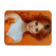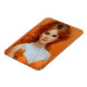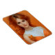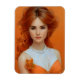 Una hermosa mujer de cabello largo vestida de blanco y naranja con un estilo de pintura de fondo naranja