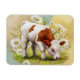Cute Baby Cow en un campo del imán de las flores de Daisies. Perfecto para colgar en la cocina o en el cajón de la oficina. Copyright Flourishing Mare LLC.
