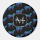 Imán Unicorn Sparkles aqua patrón oscuro azul Monograma
