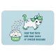 Un unicornio verde muy lindo que se popela en un quequito feliz. Personaliza con tu propio texto.
