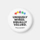 This bold awareness design delivers a powerful message of inclusion and neurodiversity through clean typography and symbolic puzzle elements. The phrase “Uniquely Wired. Equally Valued.” highlights individuality while affirming equal worth and respect for all minds. Colorful puzzle imagery reinforces connection, diversity, and acceptance, creating a visually striking and emotionally resonant design that supports understanding, empowerment, and inclusive values.