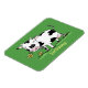 Nuestra linda vaca friesia de ordeño en blanco y negro está en una pradera de hierba verde comiendo margaritas amarillas. ¡Mucha diversión bovina!