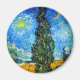 Magnet que presenta la carretera de pintura al óleo de Vincent van Gogh con Cypress y Star (1890), también conocida como Country Road en Provence por la noche. La gente camina por un camino que pasa por un hermoso ciprés bajo un cielo azul nocturno con luna amarilla y estrellas. Un regalo fantástico para los aficionados al post-impresionismo y al arte holandés.