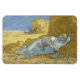 Siesta (después de Millet) de Vincent Van Gogh, aceite sobre lienzo, 1890, es un cuadro de un granjero y su esposa siesta por la tarde a la sombra de un enorme pajar en un campo de trigo, sus zapatos y guadañas cosechadoras en primer plano. El azul intenso del cielo y los tonos grises que contrastan con los colores cálidos, soleados y sutiles de los amarillos, los verdes y los naranjas contrastan con los tonos grises. Como telón de fondo, una vaca solitaria grava su vagón de heno cerca. Van Gogh copió la composición de un cuadro del realista francés de Barbizon, Jean-Francois Millet, una de las muchas copias del maestro del siglo XIX que tanto admiraba Van Gogh.