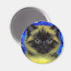 Magnet con un gato siamés en la pintura Starry Night de Van Gogh! Esta belleza esponjosa posa frente a un cielo azul nocturno con luna brillante y estrellas. ¡Un regalo acogedor para los amantes del gato y de los coleccionistas holandeses de arte!