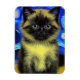 Magnet con un gato siamés en la pintura Starry Night de Van Gogh! Esta belleza esponjosa posa frente a un cielo azul nocturno con luna brillante y estrellas. ¡Un regalo acogedor para los amantes del gato y de los coleccionistas holandeses de arte!