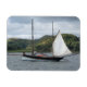 Vista marítima de un viejo barco de vela en Loch Crinan, Escocia. La Isla del Jura al fondo.