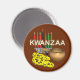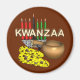 Esta imagen en 3d es sobre kwanzaa, que es una celebración africana de un festival de cosecha. La imagen de una kinara sosteniendo las 7 velas, una taza y maíz en la mazorca que representa los siete días de celebración de un festival de la cosecha. Estos imanes están disponibles en varios estilos y tamaños.