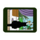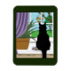 Gato negro sentado en una cornisa de ventana mirando por la ventana a los pájaros en el alimentador de aves. HD t.v. para gatos