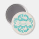 El elegante y sofisticado Damask Magnet de Moda presenta un suave fondo beige y un elegante embellecimiento en color turquesa. Este diseño moderno es fácil de personalizar con su propio texto. Haga clic en "Personalizar" para encontrar más opciones de personalización.