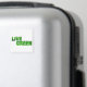 Las palabras VIVEN VERDE en verde hoja brillante con una sombra para un aspecto 3D.