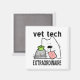 Este divertido diseño de imán profesional de Veterinary Technician presenta un perro de dibujos animados, gato y pájaro con texto, Veterinario Extraordinaire. Trabajaste duro para convertirte en un trabajador de cuidado animal y eres bueno en eso, ¡así que hazlo saber al mundo! Gran idea de regalo para tus mascotas Vet Tech favoritos también! Diseño original con derechos de autor de S. Fernleaf Designs para BlessingartAnimales.