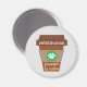 Este imán muestra una taza de café marrón con el texto "veterinario - alimentado por café". En la manga de la taza hay una huella de pata blanca sobre un fondo verde.