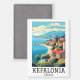 Hermoso viaje retro vintage Kefalonia imán que cuenta con vistas panorámicas a la famosa isla griega de Kefalonia. Bonito arte de vacaciones en Grecia para todos los turistas y visitantes del popular destino de viaje en el mar Mediterráneo. Haz lo tuyo y compra ahora.