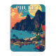 Escape a las hermosas playas de Phuket con este imán de ilustracion de estilo retro. Este clásico recuerdo tailandés cautiva el paraíso tropical de este popular destino insular. Perfecto para los amantes de la playa y los coleccionistas de recuerdos retro del sudeste asiático.