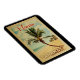 Una imagen de arte de Nassau Bahamas de mediados de siglo, única y retro, de estilo poster de viajes vintage. Cuenta con una palmera curvada en una playa de arena con el océano bajo un cielo azul turbio.