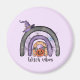 Este diseño presenta un arcoiris negro, un gorra de brujas morado y un farol con las palabras "Vibes de brujas". Es perfecto para una fiesta de Halloween o cualquier día normal.