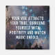 Eleva tus alrededores con nuestro encantador imán que presenta el mensaje empoderante: 'Tu vibra atrae a tu tribu. Rodéate de positividad y observa cómo se despliega la magia.
