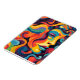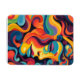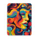 Los muelles y rizos vivos en un arcoiris de colores crean el perfil abstracto de un hombre o una mujer con una expresión pacífica. Los tonos azules, naranjas, amarillos y rojos se mezclan armoniosamente para delinear los rasgos faciales y el cabello fluido.