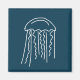 Mariscas de arte con contorno blanco sobre fondo azul marino. Este tema marino acuático y el arte moderno son adorables y divertidos. Deseas medusas.