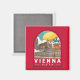 Diseño de viaje retro de Viena en estilo emblema. Su legado artístico e intelectual fue moldeado por residentes como Mozart, Beethoven y Sigmund Freud.