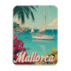 Este poster de estilo vintage capta la serena belleza de la costa de Mallorca, donde las suaves olas se unen a playas doradas bordeadas de palmeras que se balancean. Elegantes barcos de vela desfilan por el mar turquesa bajo un cálido cielo iluminado por el sol. Las obras de arte, decoradas en suaves colores y texturas retro, evocan el encanto de las vacaciones mediterráneas de mediados de siglo, perfectas para los amantes de los viajes y los amantes del diseño costero vintage.