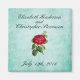 Wedding magnet with the bride and groom's name and their wedding date.An illustration of an open blossoming red rose with the stem visible and surrounded by green foliage. The background has a vintage feel with a faux parchment look in a mint green color. Customize with your personal information.