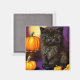 ¡Magnet con un gatito de Halloween vintage! Un gatito negro esponjoso posa junto a las calabazas sobre un fondo morado. ¡Un regalo divertido para las fiestas de Halloween y para los amantes del gato!