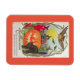 En este imán flexible de 3" X 4", se muestra una imagen ligera y vintage con búhos y búhos voladores, brujas bailando y una calabaza sonriente. ¡Una gran manera de decorar Halloween o regalar como regalo!