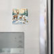 Imán Vintage Reindeer Family Winter Meadow Painting