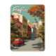 Viaje a Sofía, Bulgaria, con este vibrante afiche de viajes exhibiendo calles adoquinadas, icónicas iglesias de domo dorado, y un clásico auto vintage rojo. Perfecto para los amantes de la historia, los amantes del arte y los viajeros que buscan un atisbo nostálgico del corazón cultural de Europa del Este. Celebra el encanto de Sofía con colores ricos y detalles arquitectónicos.