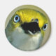 Asombrosa cara de un Vireo de ojos blancos mirándote desde un imán. Muy alegre.