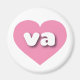 Este imán presenta un vibrante corazón rosado que contiene las letras fundas audaces, blancas, redondeadas y bajas, una abreviatura divertida para Virginia, el antiguo estado de Dominion.
