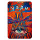Montañas coloridas, nubes y rosas. Un ojo con un símbolo espiral. Puede cambiar el texto. Arte de Alexandra Cook aka Linandara.