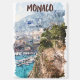 Imán Vista de puerto de viaje retro de Mónaco acuarela