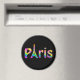 Un diseño tan divertido como el propio París. El texto de París en una vívida matriz de un arcoiris de colores con la "A" en París y un contorno de la Torre Eiffel.